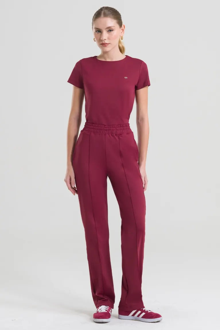La parte superior del conjunto destaca por su doble botonadura y cuello redondo, complementado por la icónica corona niquelada de la Dra. Cherie en el lateral, así como una etiqueta de goma en la espalda que le da un toque de exclusividad. Los pantalones rectos son prácticos y funcionales, con bolsillos superpuestos, abertura lateral y cintura elástica que garantiza un ajuste perfecto gracias al cordón interior.